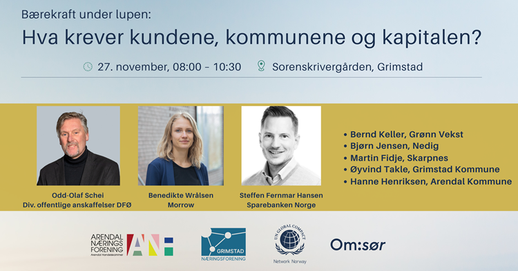 Vi lanserer med dette frokostmøte også PUSH -nettverk for bærekraft for bedrifter i Grimstad og Arendal, der hensikten er å møtes jevnlig for erfaringsdeling, påfyll og motivasjon til å se nye løsninger sammen.